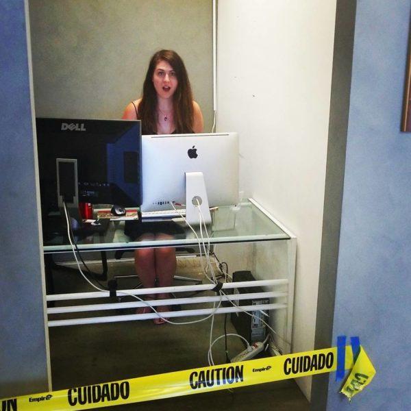 So what else happens in our office? One time our lead creative zig- zagged caution tape across the office door of our digital operations girl, as depicted below.